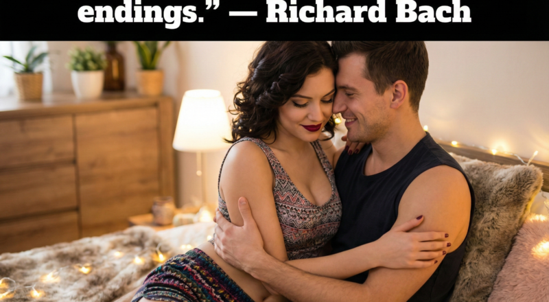 In a world obsessed with quick flings and “situationships,” the concept of eternal love can feel like a vintage fairy tale. Yet, the image of a couple embraced in the soft glow of bedroom lights, paired with Richard Bach’s timeless quote, “True love stories never have endings,” strikes a chord deep within us. It reminds us that despite the cynics, deep connection is not only real—it is resilient.