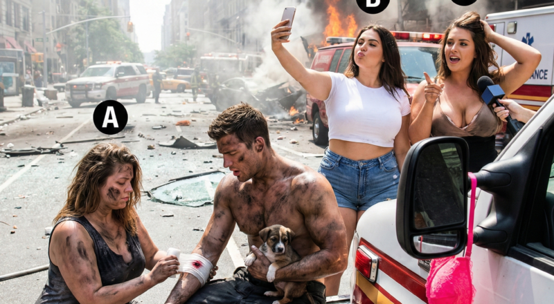 In this viral psychology test, we present a disaster scene. Three subjects are reacting to the event. One is providing aid; two are extracting value. The objective is to identify the “True Altruist” (The Hero) by auditing their physical state and locus of attention.