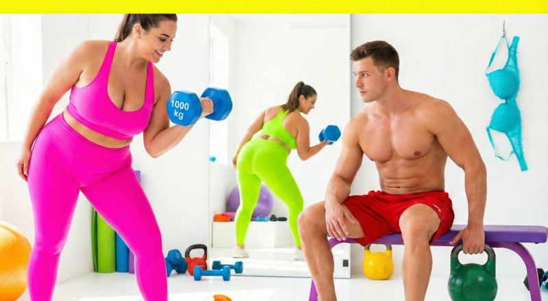 The gym is a place of physical reality. Iron is heavy, gravity is constant, and sweat is wet. But in this viral perception test, we challenge those fundamental truths. We present a blindingly bright, high-definition image of a fitness power couple in a modern white studio gym. The walls are stark white, providing the perfect canvas for the explosion of color in the foreground. The woman is in electric pink, the man is in bold red, and the equipment is a rainbow of neoprene. But hidden amidst this colorful workout are **Five Specific Logic Errors**—glitches that prove this gym exists in a broken simulation. Can you stop admiring the physiques and start analyzing the physics to find the impossible flaws?